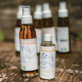 Huiles de massage bio produites sur la ferme à partir de nos plantes et de nos huiles essentielles